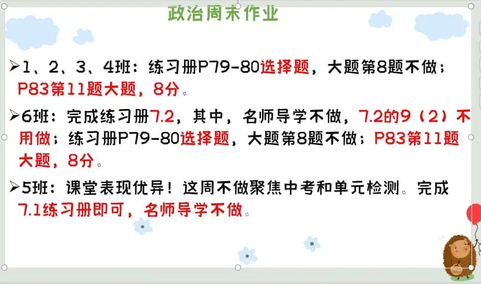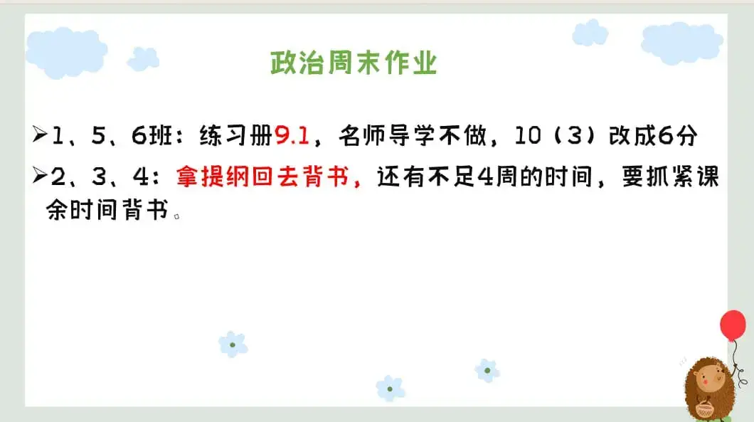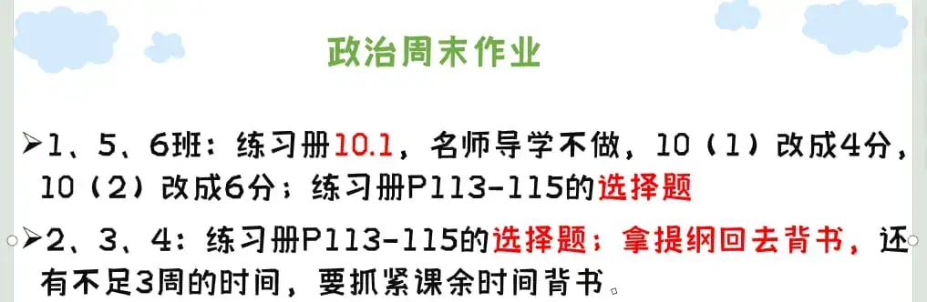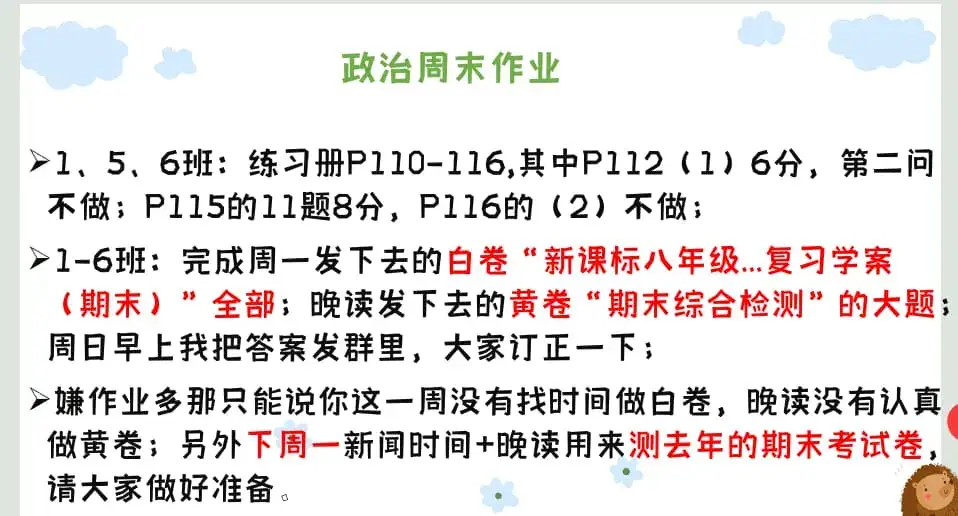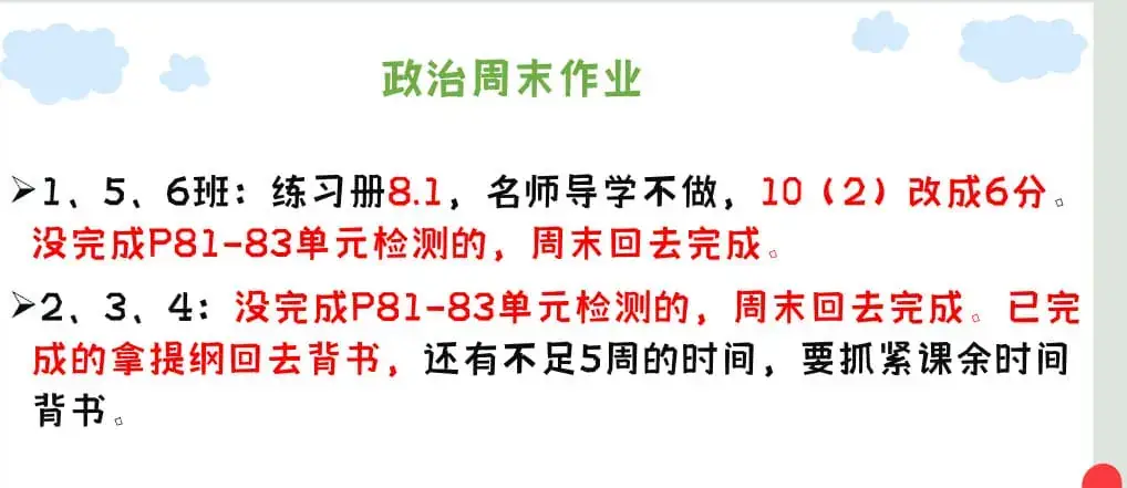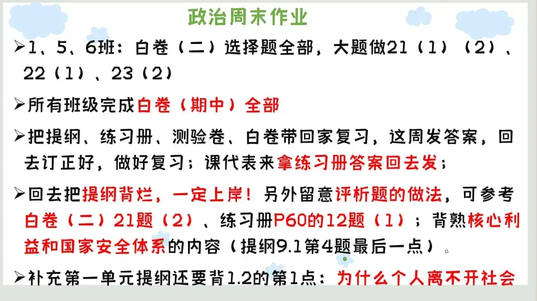 - 都是这星期讲的新课内容,很简单的。周日晚修收齐。