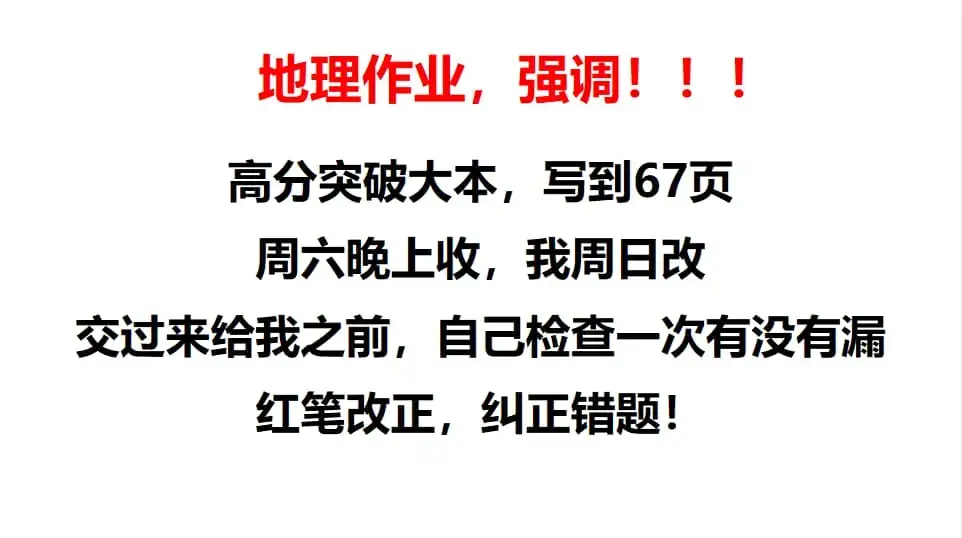 1. 手头的地理试卷都要写完,然后对答案改正。