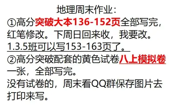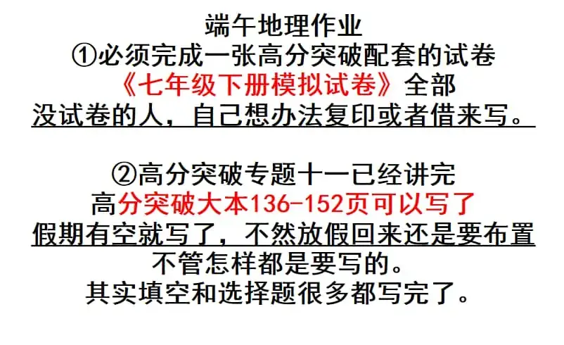 1.下周一定要带高分突破回来,包括它所有的配套资料(大本➕试卷➕答案➕考前满分特训与课后分层作业➕全彩知识清单与彩色填图册),缺一不可,都要用