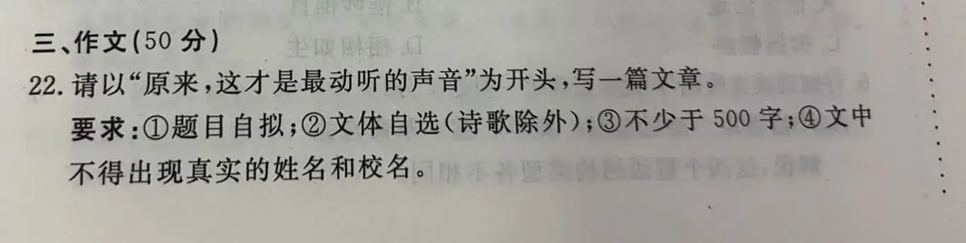 • 写在作文纸上,不少于600字,文体不限,诗歌除外